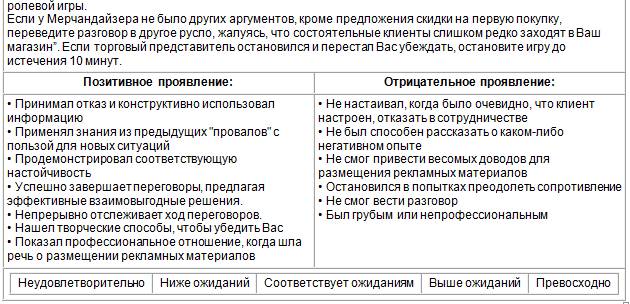 – Проведите ролевую игру (пример: Продай пачку сигарет). Оценивайте по структуре: