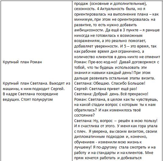 – ведущий должен иметь личный опыт работы в продажах на уровнях от торгового представителя до руководителя (отделом продаж, коммерческим директором, директором по продажам или логистики или маркетинга, или директором по персоналу). Без этого невозможно профессионально анализировать бизнес процессы, определять уровни ответственности, планировать мероприятия по исправлению и развитию сотрудников. Человек «со стороны», а ещё хуже «Звезда» с телеэкрана, не сможет построить доверительных взаимоотношений, необходимых для решения проблем между людьми, работниками и руководителями компаний. Необходимо будет говорить «на одном языке», быть авторитетом и наставником!
