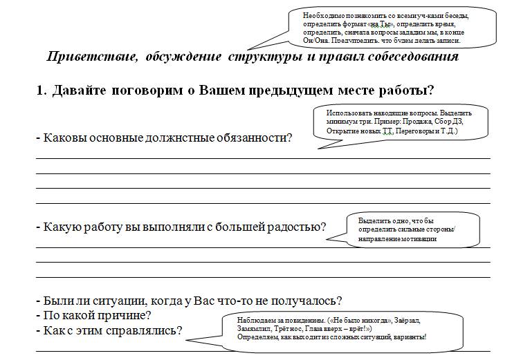Сам бланк проведения собеседования (места для записей в бланке конечно больше):