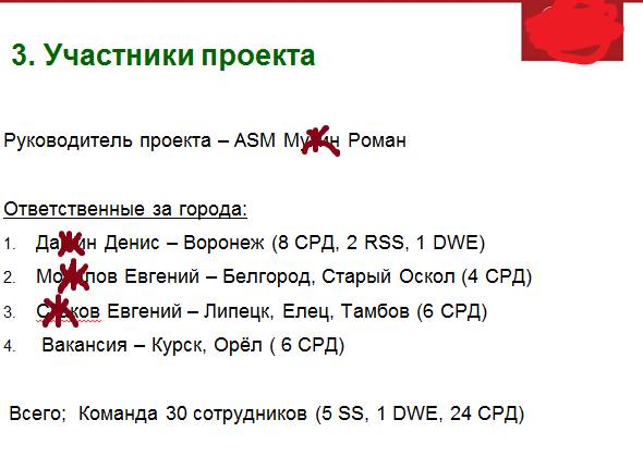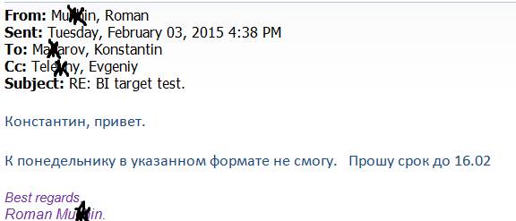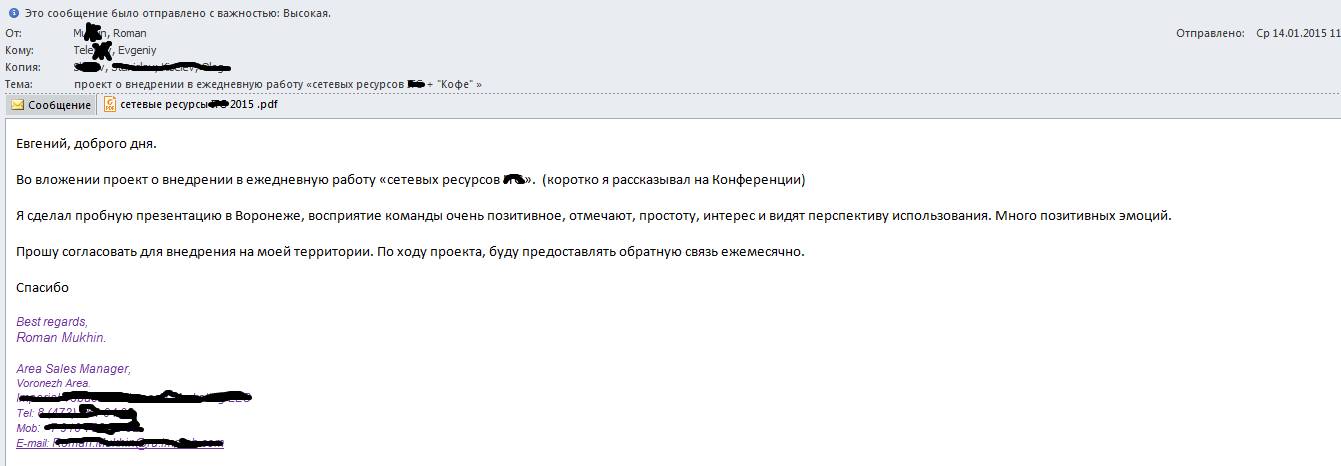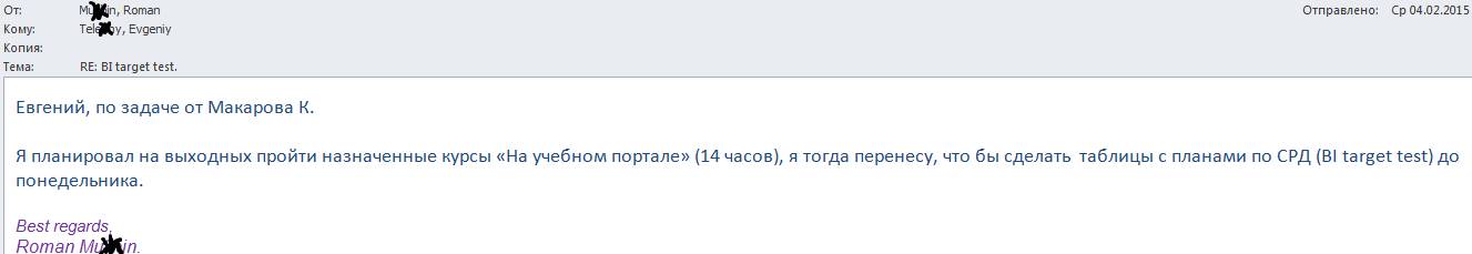 Ответ на предложение по проекту «Сетевые ресурсы Компании», я не получил совсем. Видимо для анализа и понимания содержимого – не помог даже «огромный интеллектуальный ресурс» отдельно взятого менеджера.