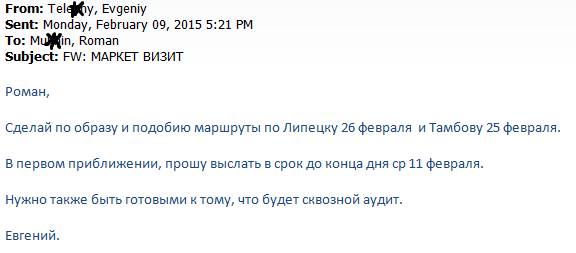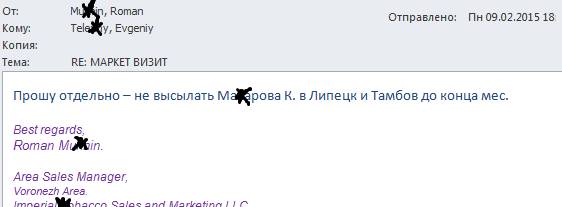 За территорию Липецк Тамбов отвечал один супервайзер. При этом супервайзера я поменял в ноябре 2014 именно из-за ситуации с Тамбовом. Там было всё, не выполнения планов по продажам, задач (всех KPI – АКБ, дистрибуция общ и фокусным брендам, оборудованию, задачи циклов), длительное падение всех показателей Nielsen и полный разброд двух штатных специалистов (ТП). Одного из них ДолЖушина увольняли в 2014 году пару месяцев, (я писал, тот который месяцами не посещал точки), доходило до того, что его искали с милицией, что бы вручить на подпись документы. А супервайзеру приходилось с ещё двумя штатными специалистами из Липецка в качестве свидетелей, приезжать в Тамбов проводить аудит и подписывать докладные. Сидели под подъездом , ездили к мамкам, вели бессмысленные переписки. Весь 2014 год в Тамбове работал по факту 1 специалист на половине города, который не блистал показателями и всё время жаловался на весь мир. Вторая половина – чисто поле. В моём понимании за проблемы и с ТП ДолЖушиным и с ситуацией в Тамбове – нёс ответственность непосредственный руководитель, т.к. этот супервайзер работал на этой территории и с этими ТП (специалистами) более 5 лет! Который или полностью не контролировал целый город в зоне ответственности, или потворствовал халатному отношению к работе Тамбовских сотрудников. Естественно, после ряда совместных визитов в Тамбов вместе с супервайзером, после неоднократного невыполнения задач, я очень предметно объяснил на общем собрании и лично, что всё происходящее – это прямое следствие работы супервайзера. Это полная ответственность супервайзера.
