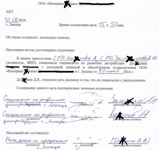 Я, ТоЖких Вадим Валентинович, Начальник по продажам в г. Липецк, на основании проведенного аудита розничных торговых точек в г. Тамбов от 25 апреля 2014г, выявил следующие нарушения: