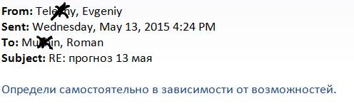 Вот ещё, например письмо. И маленький прикол, когда он ставил в скрытую копию руководителей повыше или предполагал, что будет пересылать письма позже, появлялась, как вы думаете что – о, хвала корпоративным Богам, подпись в конце письма!