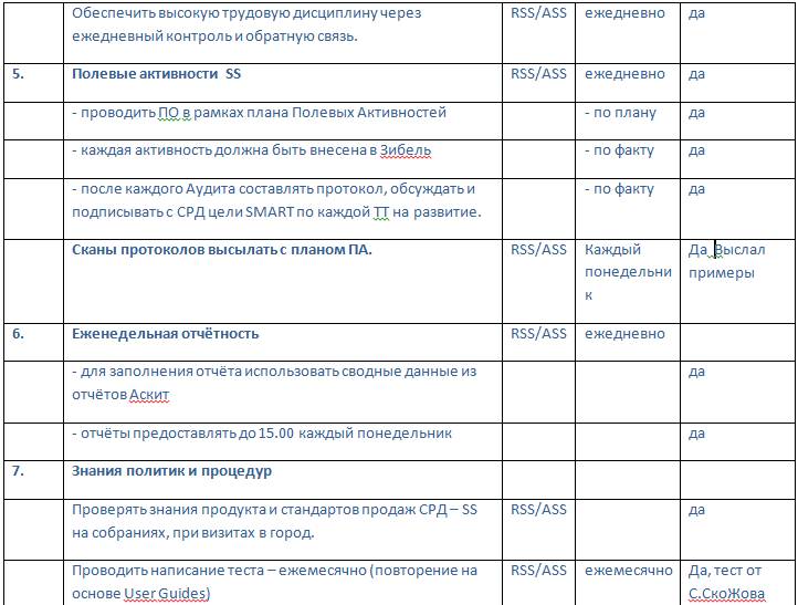 – выполнение стандартов в полях (ежедневные фотоотчёты из каждой ТТ, совместные визиты).