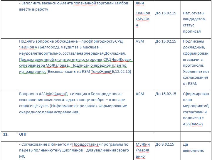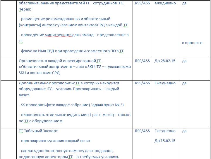 Вот план действий из письма, который я составлял ранее, с указанием статуса выполнения. «Да» – это выполнено: