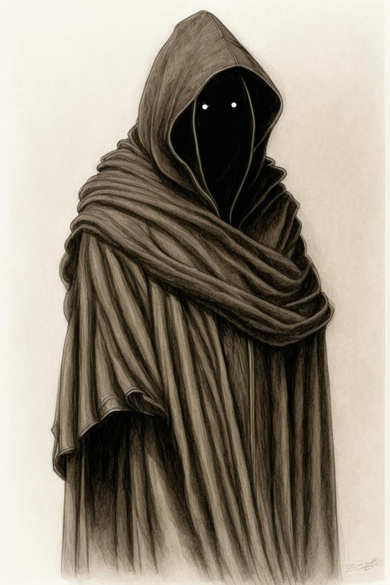 Проезжая мимо очередной поляны, он неожиданно для себя увидел, как кто-то в темно-коричневом плаще с накинутым на голову капюшоном сидел у разведенного костра из веток. Егор остановился и хотел уже было спуститься с квадроцикла, как фигура в плаще резко подняла голову, и он увидел под ней лишь черную пустоту вместо лица. Два светящихся желтых глаза уставились на него.