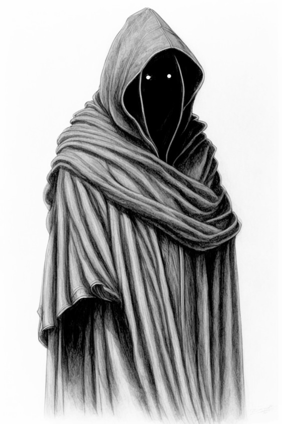 Проезжая мимо очередной поляны, он неожиданно для себя увидел, как кто-то в темно-коричневом плаще с накинутым на голову капюшоном сидел у разведенного костра из веток. Егор остановился и хотел уже было спуститься с квадроцикла, как фигура в плаще резко подняла голову, и он увидел под ней лишь черную пустоту вместо лица. Два светящихся желтых глаза уставились на него.