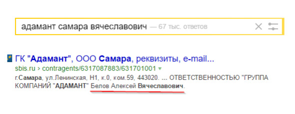 Иногда сообщают одно только отчество. В этом случае вбиваем его вместе с названием компании в поисковик и находим полное имя человека.