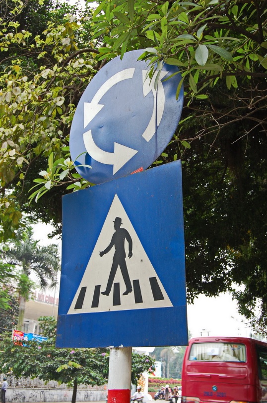 Если вы помните по школьным урокам истории, Вьетнам долгое время был французской колонией (лично я этого не помню и вряд ли когда-то знал, а рассказал нам об этом все тот же Жанг). Напоминанием о тех временах остались красивейшие европейские особняки на улицах Ханоя, латинский алфавит, значительно упростивший письменность вьетнамского языка (правда, украшенный неимоверным количеством точек, черточек и акцентов над буквами), а также дорожный знак, установленный у «зебры» на перекрестке и позволяющий переходить улицу пешеходам. На этом знаке подтянутый джентльмен в котелке динамично пересекает проезжую часть.