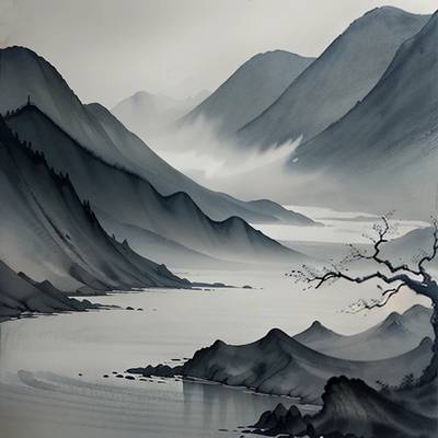 Живопись тушью / Ink wash painting: вид изобразительного искусства, в котором для создания живописного произведения используются неразведенные или разведенные водой чернила. Этот метод предполагает нанесение чернил на бумагу, ткань или другую поверхность, а затем их смешивание с водой для создания различных визуальных эффектов. При соединении чернил с водой зачастую образуются уникальные вариации цветов, тонов и оттенков, делающие произведение неповторимым. Тушь часто применяется для создания пейзажей, а также каллиграфического письма. Готовые работы, выполненные в данной технике, охотно используют в качестве иллюстраций.