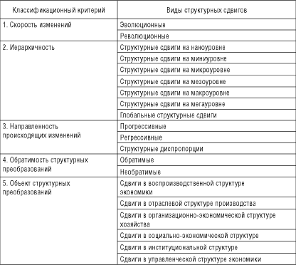 Таблица 1.2. Классификация структурных сдвигов в экономике [53]