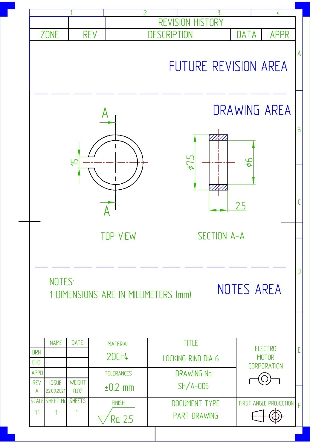 Лист содержит основные блоки – блок основной надписи TITLE BLOCK и блок фиксации проведенных изменений REVISION HISTORY BLOCK. Эти блоки должны быть на чертеже всегда.