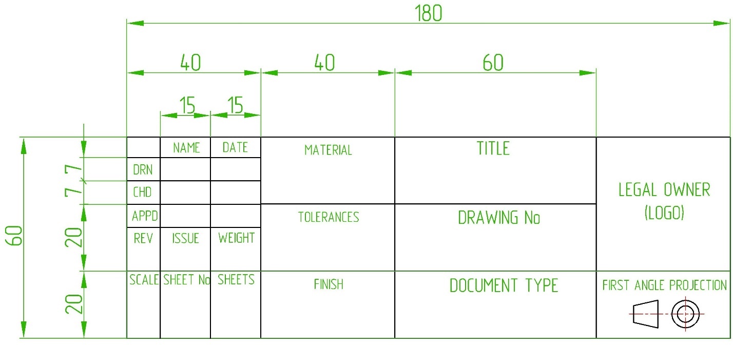 Рассматривая основные надписи иностранных чертежей, первоначально можно впасть в смятение, увидев, как сильно они различаются. Они отличаются не только от ЕСКД, но и друг от друга. Дело в том, что ISO 7200:2004 не устанавливает жестких ограничений на форму основной надписи. Он устанавливает обязательный набор данных, которые должны быть в основной надписи, а дополнительные необязательные данные разработчики чертежа могут вносить по своему усмотрению, если это требуется. Разрешается изменять размеры полей основной надписи, перемещать их, масштабировать. Так сложилось исторически в связи с тем, что старые компании, фирмы, предприятия, имеют свою оригинальную конфигурацию основной надписи. Фирменный образец основной надписи выдается как шаблон новым работникам. По форме и начертанию основной надписи, даже без логотипа компании, опытные люди могут определить, на каком предприятии выпущен чертеж. Требование только одно – длина основной надписи не должна превышать 180 мм.