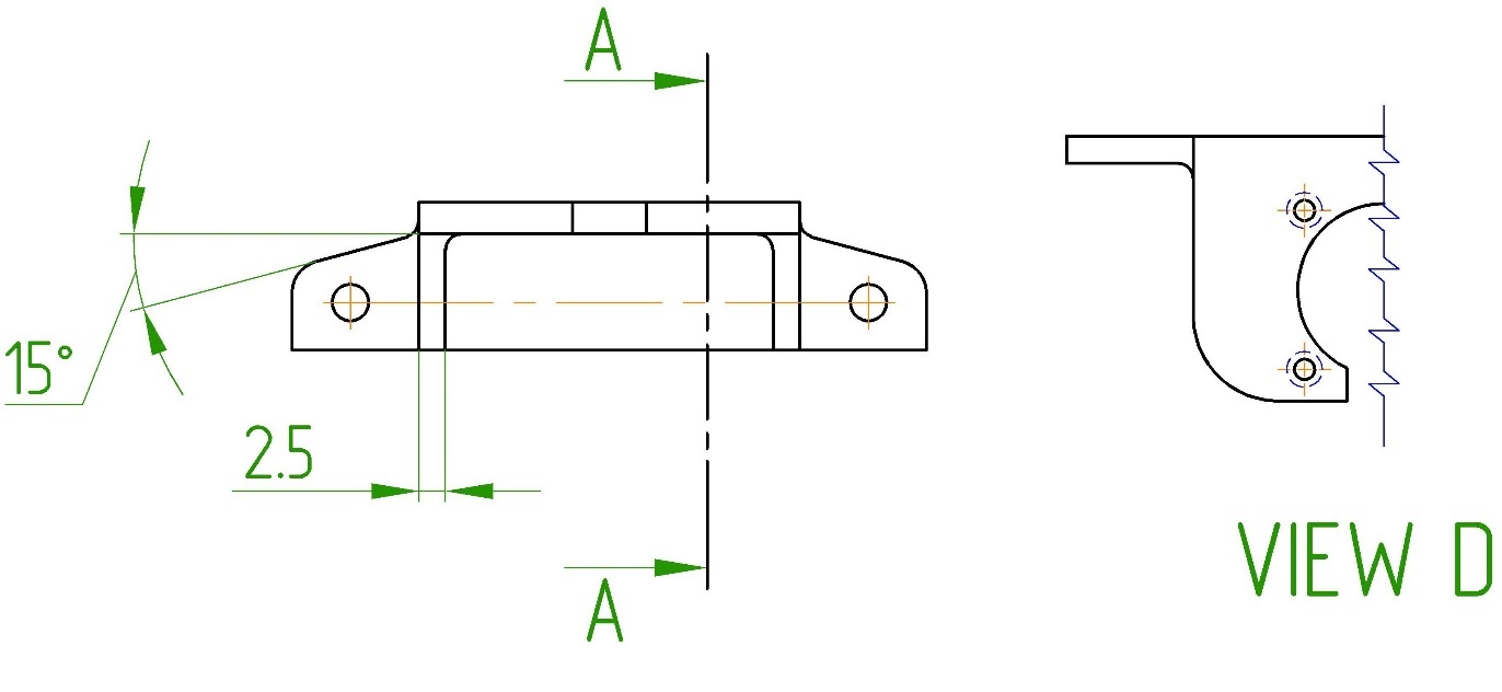 Если разрез детали выполняется только до оси детали, то вторая линия сечения (маркер сечения) с направлением взгляда не ставится (рисунок 9) и под изображением разреза SECTION не пишется.