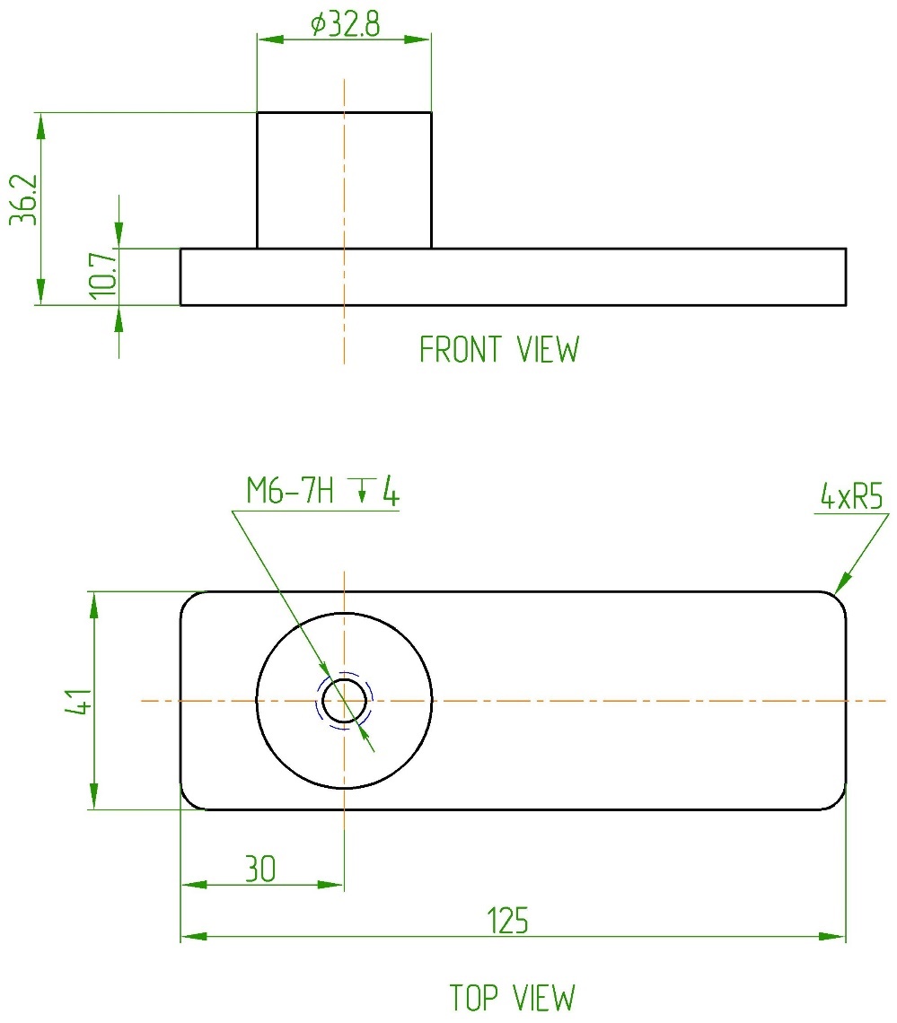 Под графическим изображением вида, который построен по проекционным связям и не имеет стрелки указания вида, то есть для стандартных видовых проекций, допускается подписывать название вида: вид спереди FRONT VIEW, вид сверху TOP VIEW, вид слева LEFT VIEW и т.д. (см. рисунок 10).