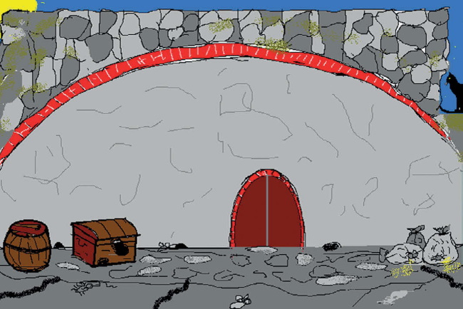 Вечером взял он кусочек вкусного сыра и отправился в гости. Чтобы попасть в старый погреб, нужно было перебежать через весь двор. Это было очень опасная затея, ведь так легко было попасть коту в лапы. Но, на счастье, Мурлыка в это время был в кухне и лакомился сливками из своего блюдечка.
