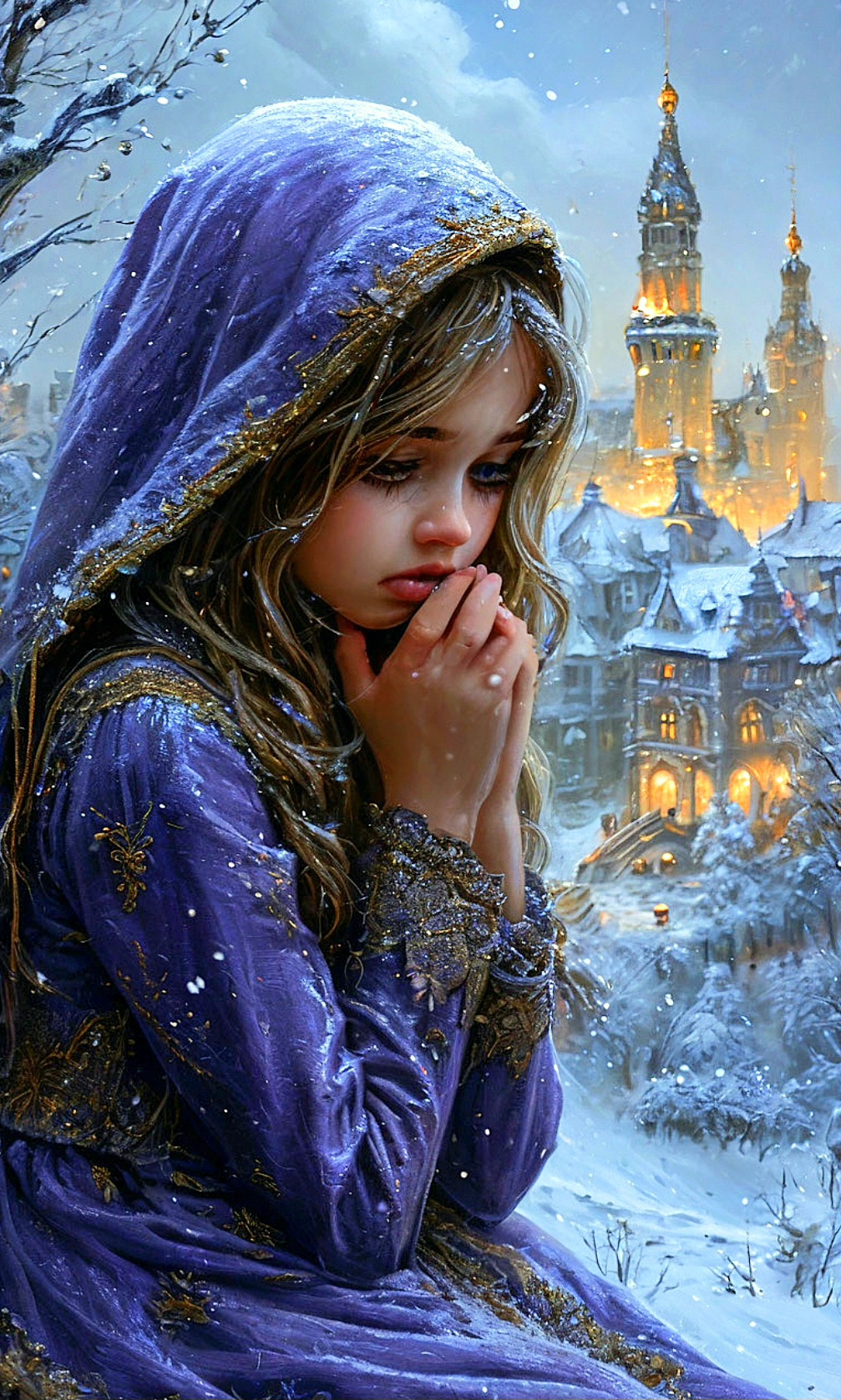 Постепенно на город начало опускаться снежное покрывало. Анна спросила Мир, почему он укрывается снегом. Хоть и не сразу, но Мир ответил: «Дитя, мне настолько холодно, что лучше я накину на плечи снежную шубу, чем буду мёрзнуть на жестоком морозе». Анна пожелала Миру скорейшего наступления весны и продолжила просить у добрых людей деньги маме на лекарство.