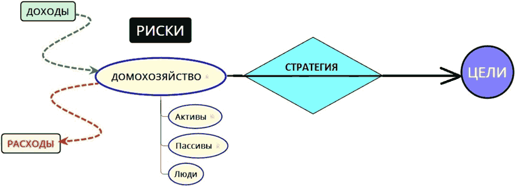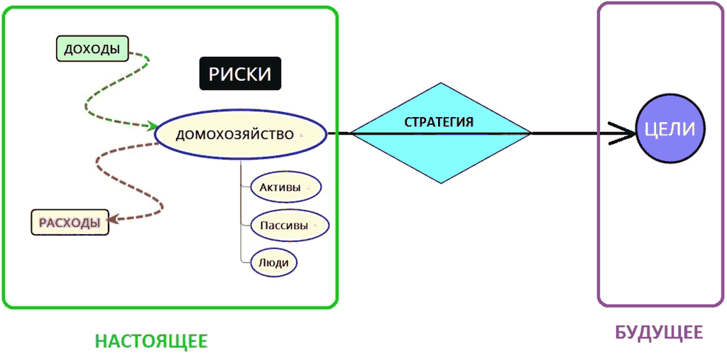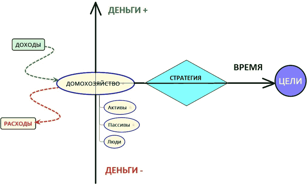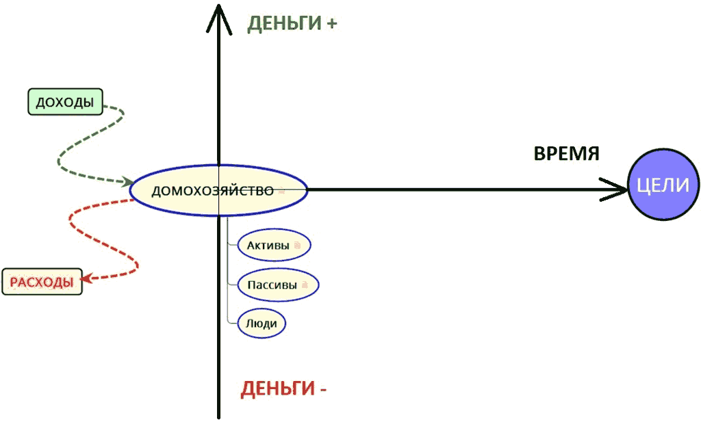 Не многие осознают, что настоящее богатство домохозяйства это не только финансы (то есть деньги, материальные ценности, активы). Но это также еще и люди (то есть все члены домохозяйства, их здоровье и личное время). Это совокупность денег, знаний, умений и опыта.