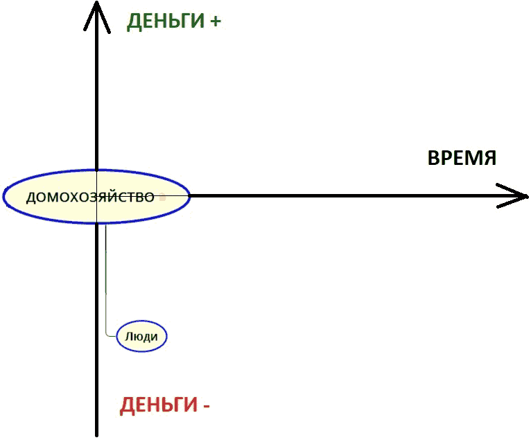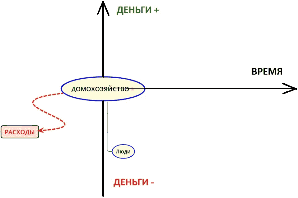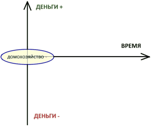 В точке пересечения линий, то есть в центре всего, находится «ДОМОХОЗЯЙСТВО».