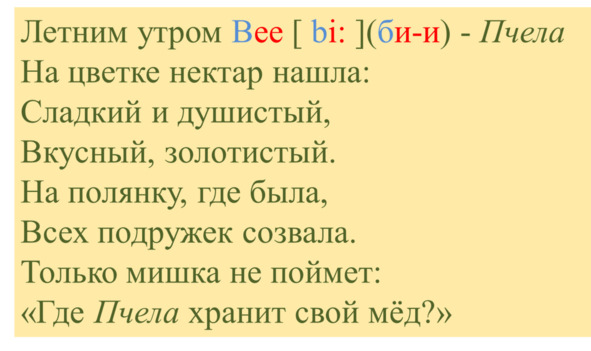 Я учила английский с 6 лет. Поэтому знаю, как важно успешно начать осваивать язык, сделать его своим и понятным. Именно стихи и песенки помогли этому.