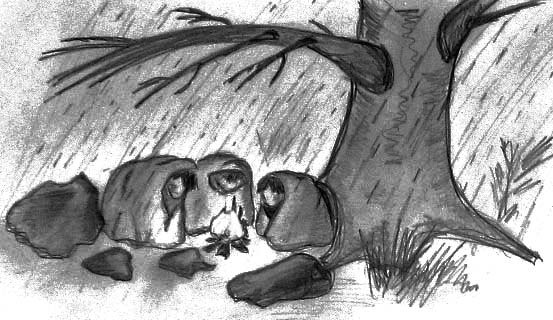 Совершая уже привычный ритуал, отец обнес шерстяной ниткой их новое убежище, чтобы избежать опасных ночных гостей. Остатки пищи были также предусмотрительно глубоко зарыты, чтобы не привлекать внимания хищников, которые могли здесь обитать.