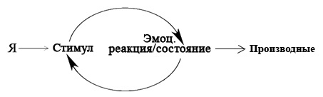 Навязчивость этой мелодии, как и сам факт ее автоматического воспроизведения как раз и указывают на циркуляцию АВ. Аналогичная картина и в первом примере – наблюдается устойчивость эмоциональной реакции. И не только состояния, но и его производных. Так, в качестве механизма минимизации отрицательного переживания у мужчин, но чаще у дам может быть запущен длительный внутренний анализ – «Он не прав, потому что», «Я не такая, потому что»… (по Фрейду – интеллектуализация, компенсация, гиперкомпенсация). Таким образом, психологический цикл – это петля циркуляции внимания бессознательного