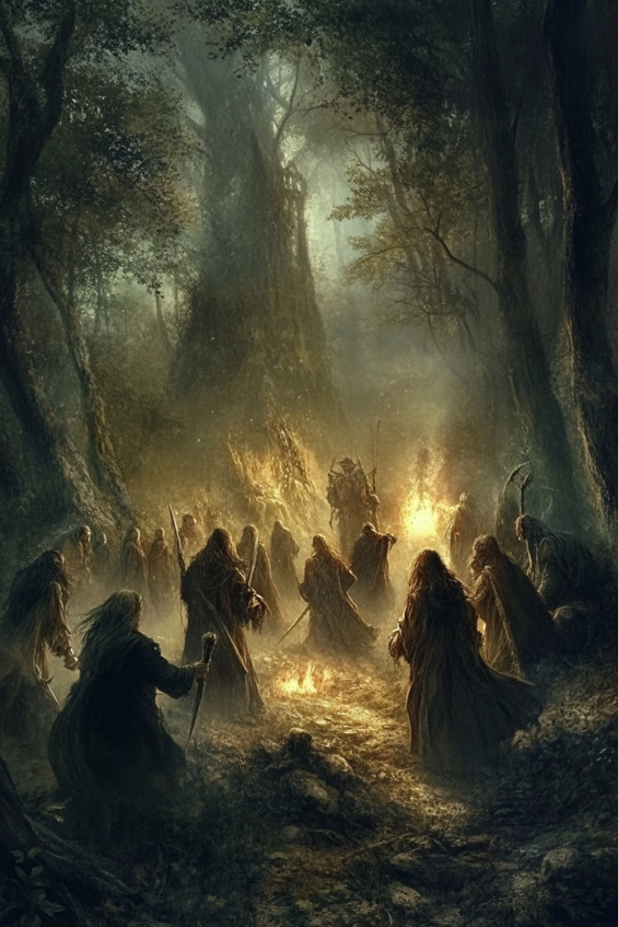 Друзья отправились в путь, и их дорога пролегала через узкие улочки городка, ведущие к лесу. Когда они наконец достигли его опушки, атмосфера сразу изменилась: в лесу царила тишина и таинственность. Высокие деревья создавали прохладу, и слабый ветерок шевелил листья, создавая едва слышимый шорох.