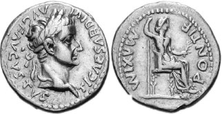 Золотая монета с изображением Тиберия и Ливии