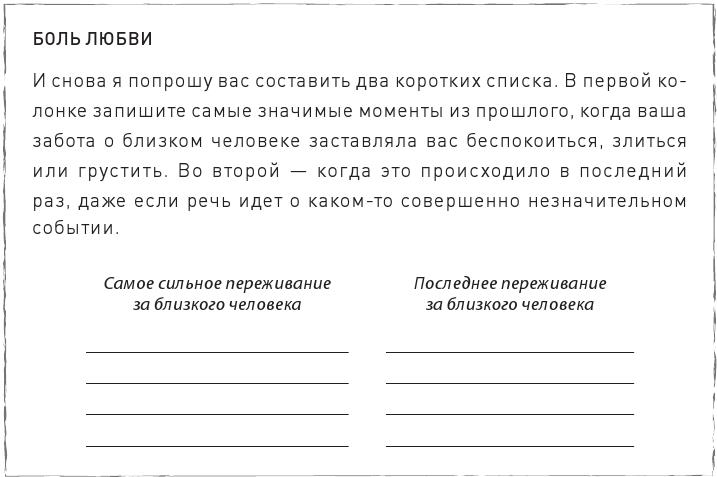 Возможно, выполняя это упражнение, вы заметили, что подобные мысли посещают вас довольно часто. Даже когда у наших близких все хорошо, мы знаем, что рано или поздно с ними может что-то случиться.