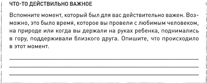 Наша поглощенность повседневной неосознанностью поражает, когда мы начинаем задумываться о действительно важных для нас вещах. Чтобы убедиться в этом, выполните упражнение Что-то действительно важное ниже.