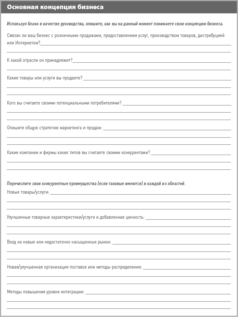 В каком направлении развивается ваша отрасль? Важно видеть основные тенденции, которые будут влиять на ее общее состояние в будущем, а также изучать текущие условия. Отмечается ли в отрасли тенденция к укрупнению, когда крупные компании сливаются в огромные бизнесы? Что происходит с ценовым давлением, потребительским спросом, доступностью комплектующих, поставками сырья, глобальной конкуренцией? Представленные в главе 6 бланки помогут вам определить и сделать прогноз тенденций развития вашей отрасли.