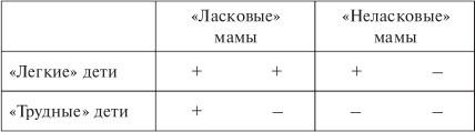 Как вы уже, вероятно, поняли, «трудные» дети с «неласковыми» мамами давали наиболее неблагополучную комбинацию.