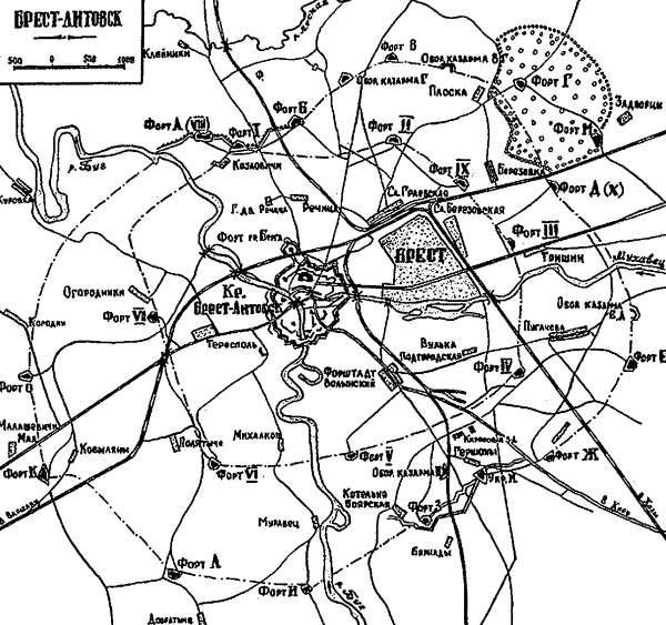 …Итак, Брест-Литовск. Город, в 1918 г. уже ставший символом побед немецкого оружия. В то же время это не просто приграничный город, а комплекс фортификационных сооружений, обороняемых противником, чья непредсказуемость и ожесточенность, кстати, во многом и стали причиной Брестского мира 1918 г. Благодаря тому, что Брест лежал достаточно далеко от германских границ, в предвоенное время он мало интересовал вермахт. Сейчас, учитывая стратегию «Барбароссы», о которой, впрочем, командирам частей 45-й дивизии немного было известно, город и его цитадель становились ключевыми пунктами на будущем Восточном фронте.