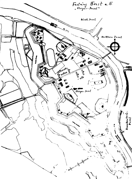 В связи с этим у командования дивизии формируется максимально полная информация о Брест-Литовске, хотя, конечно, чаще всего лишь как о составной части приграничных укреплений русских. На данном этапе, в основном для формирования общего представления, этому служили анализ данных о крепости Брест-Литовска, и характеристика отдельных окружающих ее укреплений (по данным времен Первой мировой войны (1916 г.) и аэрофотосъемки ноября 1940 г., подготовленные инспектором восточных укреплений)[50]. Кроме того, описания приграничных укреплений в полосе Бреста и отдельных сооружений цитадели, подготовленные разведслужбами различных командований (прежде всего А.О.К.4), на основе и аэрофотосъемки, и захваченных польских материалов[51]. Далее, базируясь на них, уже должен был быть сформирован максимально учитывающий ситуацию план нападения.
