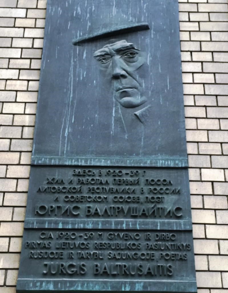 Мемориальная доска на доме в Москве, где работал Ю. Балтрушайтис. Фотография с сайта ru.wikipedia.org