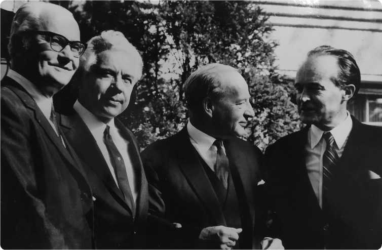 Участники четырехсторонних переговоров (слева направо): К. Раш – посол США в ФРГ; П. А. Амбросимов – посол СССР в ГДР; Р. Джеклинг – посол Англии в ФРГ; Ж. Сованьярг – посол Франции в ФРГ.