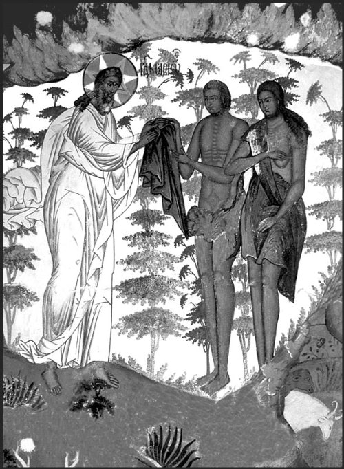 Были же Адам и жена его в Раю оба нагими и не стыдились (как ныне малые младенцы не стыдятся), ибо они еще не ощущали в себе плотского вожделения, которое является началом стыда и о котором они тогда еще ничего не знали, и это самое их бесстрастие и невинность были им как бы прекрасным одеянием. И какая для них могла быть одежда более прекрасной, чем сама чистая, девственная, непорочная их плоть, райским блаженством услаждаемая, райскою пищею питаемая и благодатию Божиею осеняемая?