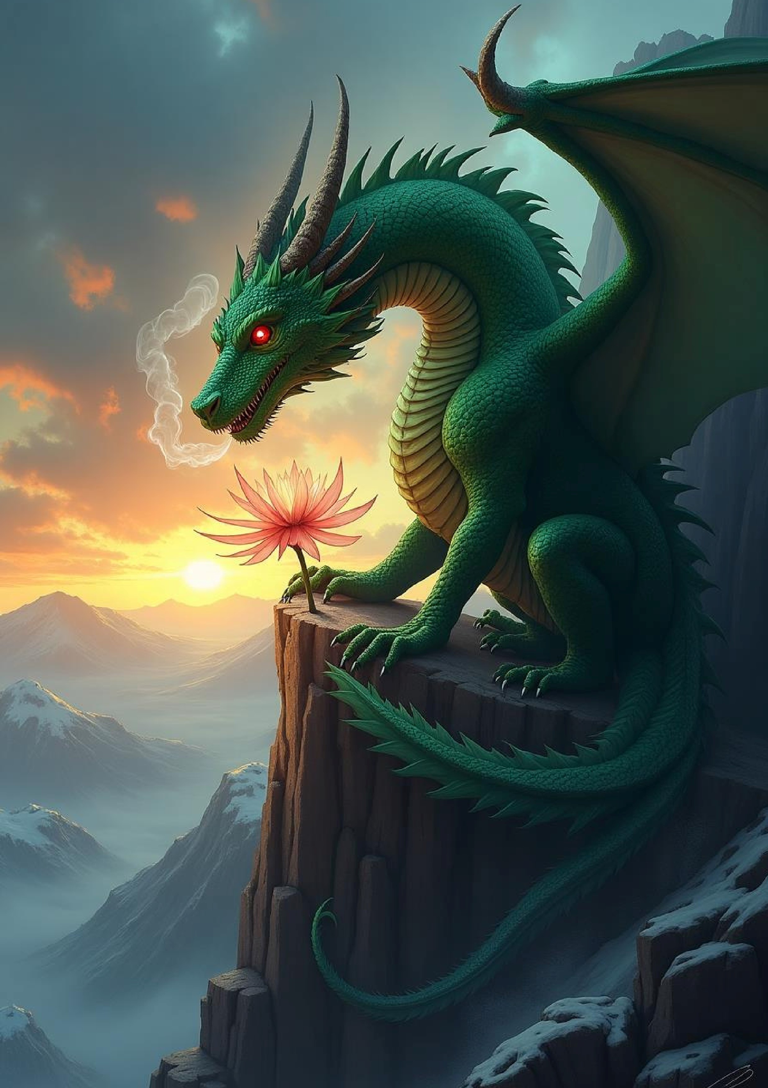 Из-за скал вышел огромный дракон с зелеными чешуями, сверкающими на солнце, как изумруды. Его глаза были ярко-красными, а из ноздрей валил дым. Ляля почувствовала, как её сердце забилось быстрее.