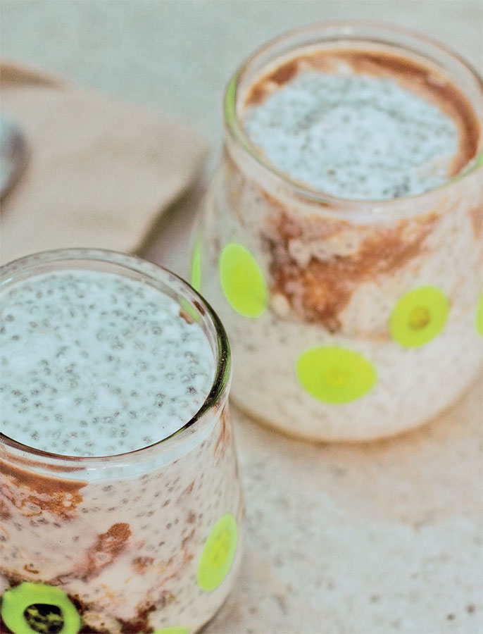 5. Налейте равное количество сиропа в 4 маленькие банки, чашки или стаканы. Наполните их пудингом из семян чиа (сироп распределиться по пудингу естественным путем) и наслаждайтесь.