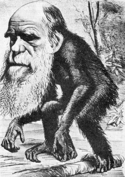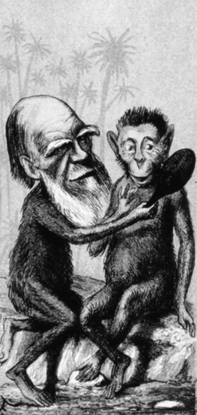 * * *Спор с учением Дарвина нередко сводят к вопросу: произошёл человек от обезьяны или нет? Многих до сих пор, а во времена Дарвина – и подавно! – возмущает сама возможность иметь предком волосатую пародию на человека. Вот и Дарвина некоторые карикатуристы изображали в виде обезьяны.