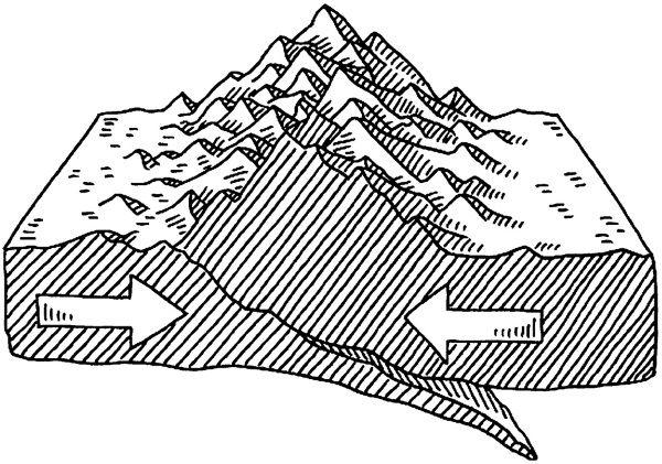 Схема субдукции. На месте столкновения плит не горы, а впадина