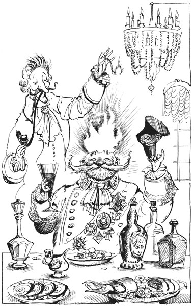 Суровый климат и обычаи страны породили в России большую привычку к вину. Немало я встретил людей, которые довели своё искусство пить до виртуозности. Но всех в этом отношении превзошёл один генерал с седой бородой и медно-красным лицом, который очень часто обедал с нами.