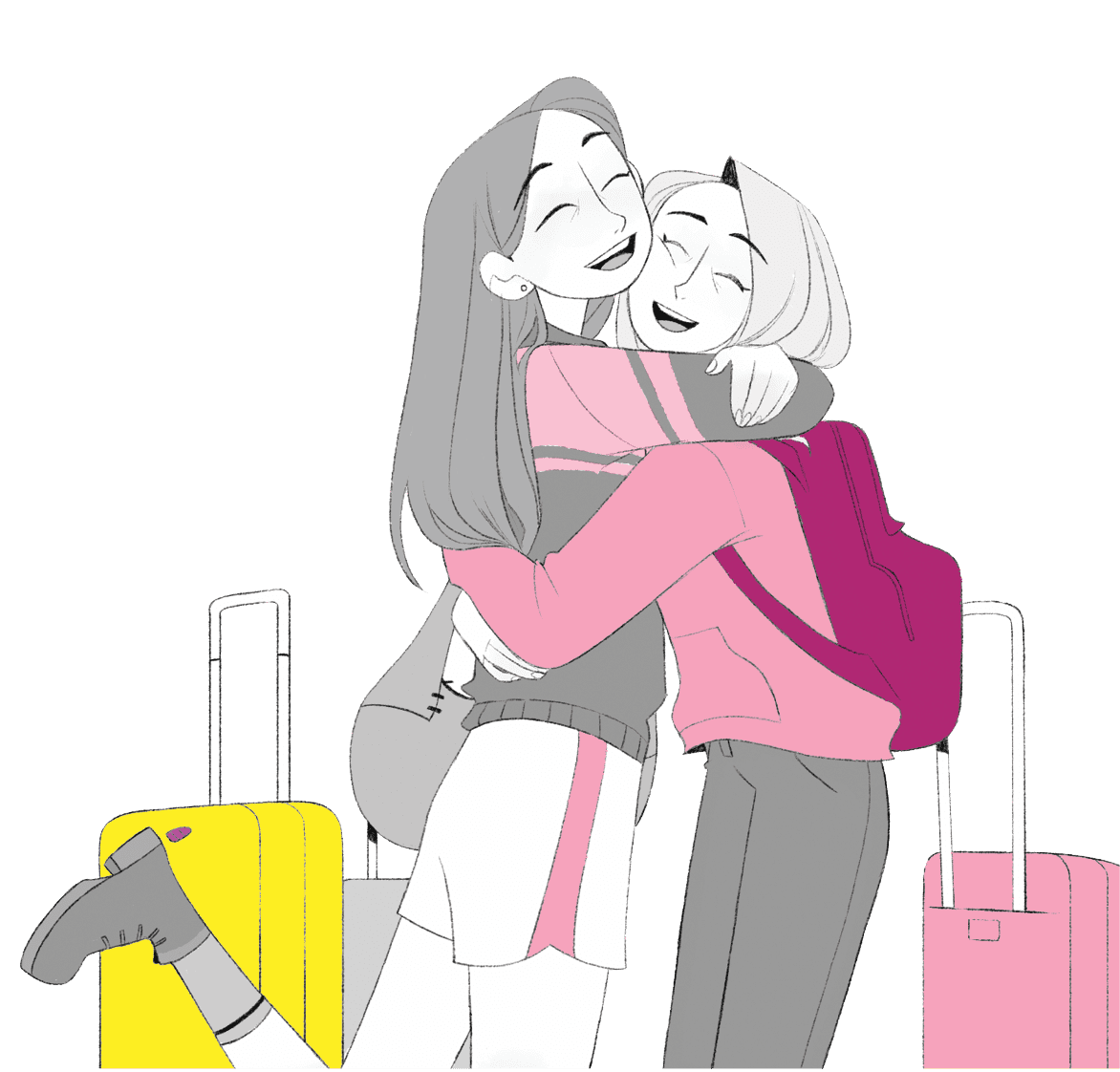 Трейни повернулась и сделала быстрое движение рукой, дав знать, что тоже её заметила. Когда кореянка подошла ближе, сдержанно, но приветливо улыбаясь, Лисёнок поддалась эмоциям и бросилась к подруге с объятиями.