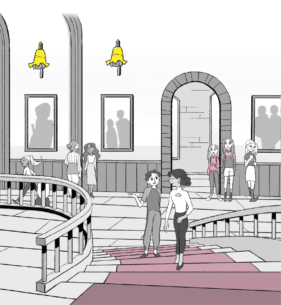 Блейк провела запястьем по сенсору, расположенному на стене рядом с лифтом, и двери его открылись. Все трое вошли внутрь и поднялись на третий этаж. Не успели они выйти, как в коридоре кто-то пронзительно закричал. Лисёнок вздрогнула, но через мгновение поняла, в чём дело. Кричали Ривер и Тара. Оказывается, они приехали в особняк раньше и уже давно поджидали своих коллег по гёрлз-бэнду. Лисёнок первой бросилась к подругам. Через мгновение к ней присоединилась Сон Хи. И все четверо крепко обнялись, радостно и взволнованно смеясь.
