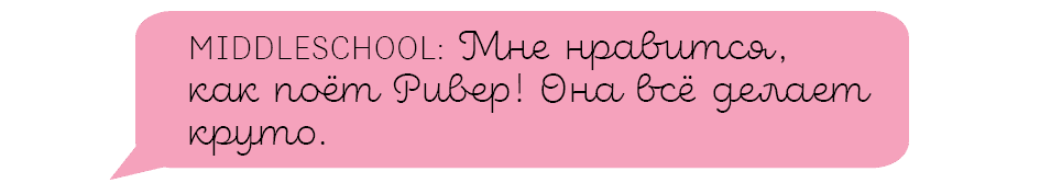 Сообщений было ещё очень много. Одни подписчики говорили, что дебют был что надо. Другие – что ждут нового альбома, чтобы потанцевать под него. Резких замечаний и критики, впрочем, хватало тоже. Большинство зрителей прямого эфира оказались фанатами Ривер, точнее, сериала, в котором она снималась, – «Театра средней школы».