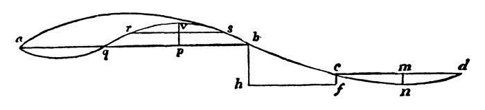 244. Take a flat line of beauty, a d, fig. 14, for the length of the edifice. Strike a b horizontally from a, c d from d; let fall the verticals, make c f equal m n, the maximum; and draw h f. The curve should be so far continued as that h f shall be to c d as c d to a b. Then we are sure of a beautifully proportioned form. Much variety may be introduced by using different curves; joining parabolas with cycloids, etc.; but the use of curves is always the best mode of obtaining good forms.55