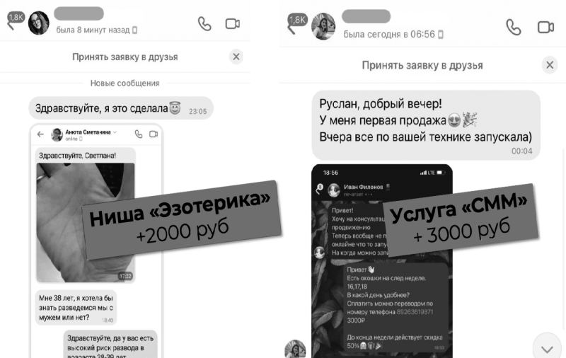 Через сутки другая моя ученица, нумеролог Ольга Карпова, продала первую консультацию во ВКонтакте.