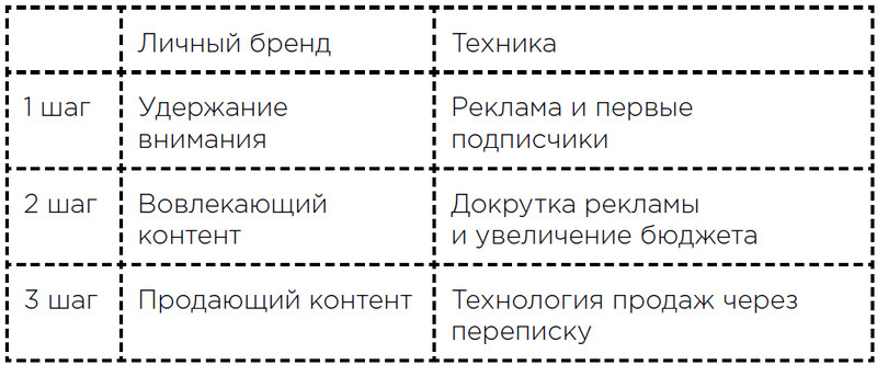Один шаг – это одна глава книги. И использование сразу двух инструментов: техника и личный бренд.