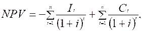 Если проект предполагает не разовую инвестицию, а последовательное инвестирование финансовых ресурсов в течение ряда лет, то формула для расчета NPV модифицируется следующим образом: