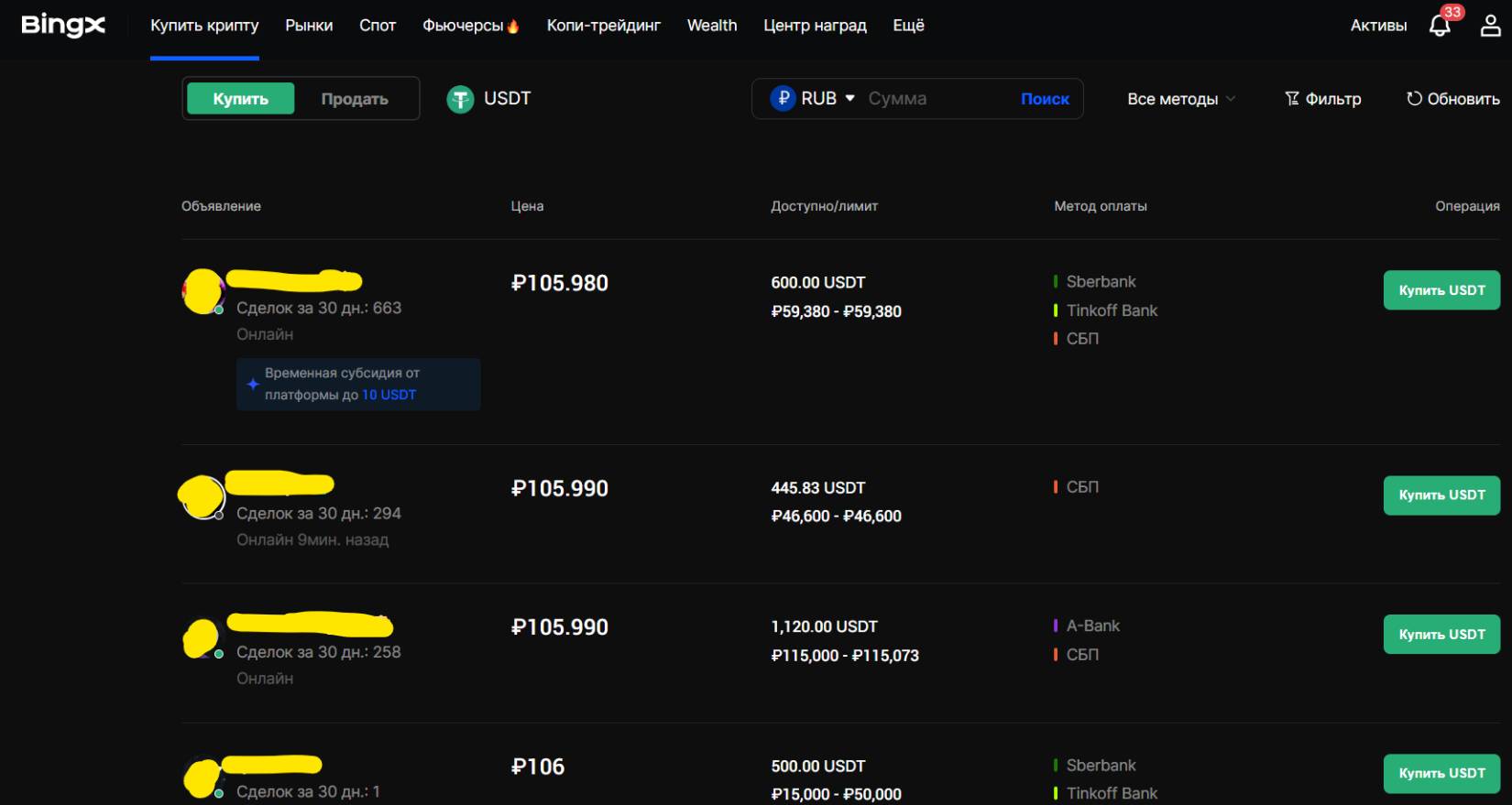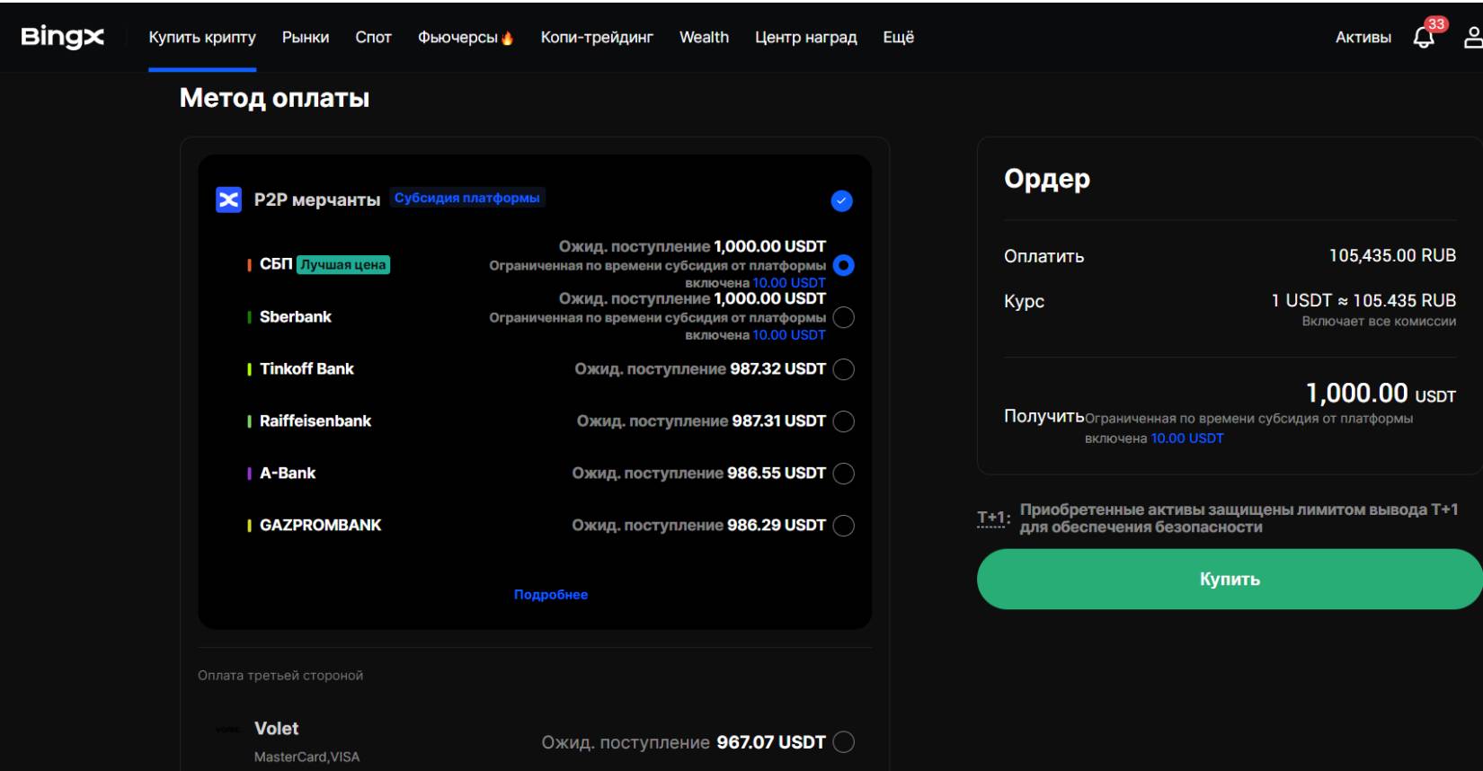 Выбирайте то, что вам комфортно и покупайте USDT и иную крипту через удобные инструменты на бирже BINGX.